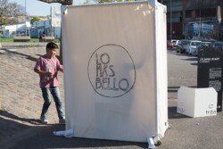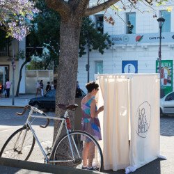 Esta instalación móvil, es un pequeño set de filmación donde se graban entrevistas.