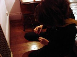 - ate firmemente el extremo del hilo en un lugar que elija de la sala
