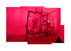 En su caso, una experiencia que se vuelve sobrecogedora y emocionante porque no planea sin rumbo en una nebulosa conceptual, sino que baja de forma directa a las centrales nerviosas de la piel y los sentidos, transformada en pura poética formal, en color, sutilidad y misterio. Iriart sabe crear belleza en sus piezas porque, justamente, hace sentir que la representación no alcanza, que es solo una plataforma para desencadenar una experiencia inédita que ofrece un detrás infinito. A sus propuestas anteriores donde el espacio y tiempo eran corporizados a través de reflejos y mediante la participación necesaria del espectador y su búsqueda en constante movimiento ( como en pasaje ámbar ) o por la relación azarosa entre la liberación de una material y la respuesta natural del contexto ( como en los lanzamientos ), en olor a bosque se suma la expansión sensorial del sonido y sus temporalidades rítmicas. La pieza es un paisaje-instrumento con vida propia, hecho con objetos, maderas y pequeños motores.