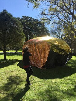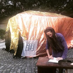 Es un dispositivo para que los visitantes participen proyectando su sombra y a su vez puedan llevársela plegada. Esta pieza participo de la BienalSur, actualmente se encuentra itinerario por el interior del país, Tucumán, San Juan y Rosario, y luego estará un tiempo en San Pablo, Brasil, para finalmente regresar a Buenos Aires.
