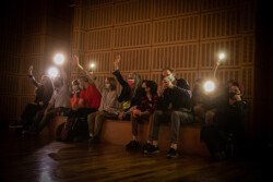 Esta obra es una pieza de creación colectiva. La he realizado en distintos contextos y con distintas cantidades de personas. La dinámica siempre consiste en que yo formulo preguntas que creo especialmente para cada ocasión, y las personas responden con la luz de sus teléfonos celulares. De esta manera se crea una “constelación” visual que representa cada respuesta.
