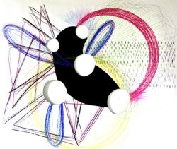 Estas obras forma una serie que comencé hace años. Con la misma investigo las posibilidades de retratar sonidos con líneas, colores y texturas. Asignando a los sonidos del ambiente ciertas formas y colores sin ningún tipo de alfabeto, más bien dejando que la mano encuentre las lineas y pinceladas que surgen de escuchar con la mayor atención posible. Los voy cobrando con las estaciones del año en que los termino y con números según el año. Los sonidos que “retrato” son silvestres, de ciudad, de la memoria, del pensamiento, de los fluidos, del espacio, sonidos que escucho aunque también pinto los que imagino. La figura negra simboliza el cuerpo receptor, la forma testigo que percibe lo que suena y la atraviesa.