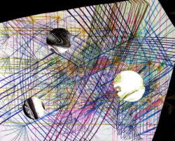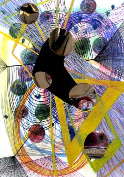 Por otro lado esta serie es el resultado de la unión de dos zonas de mi trabajo que desarrollo hace años también: El espacios, con las instalaciones y acciones participativas y El plano, con las pinturas y dibujos. En estos ” sonidos ” el espacio y las personas modifican permanentemente, entran y salen de la obra a través de los reflejos que se producen en los calados con fondo espejado.