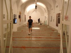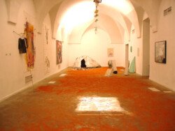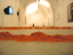Como polvo de ladrillo es una instalación/acción sobre toda la superficie de la sala.