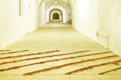 En esta muestra dibujé en el piso con polvo de ladrillo líneas diagonales de pared a pared