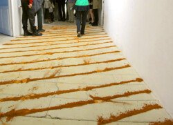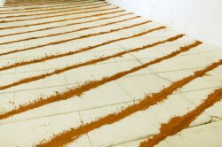 Al abrirse la muestra al público la transformación es inevitable. Cada visitante modifica la línea de polvo hasta hacerla desaparecer en un color uniforme lleno huellas.